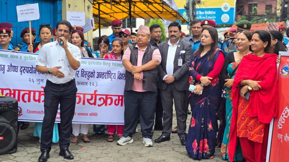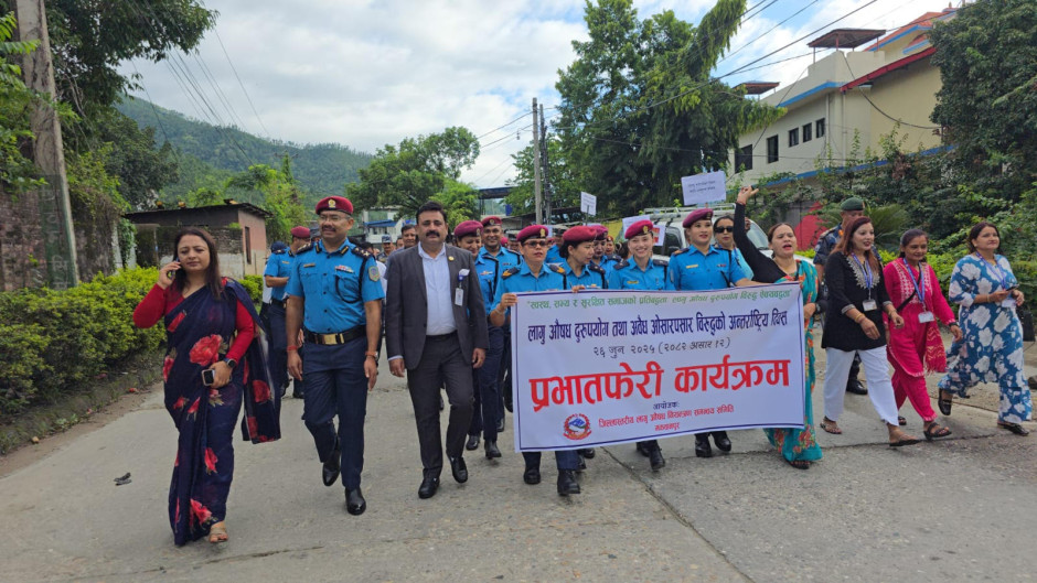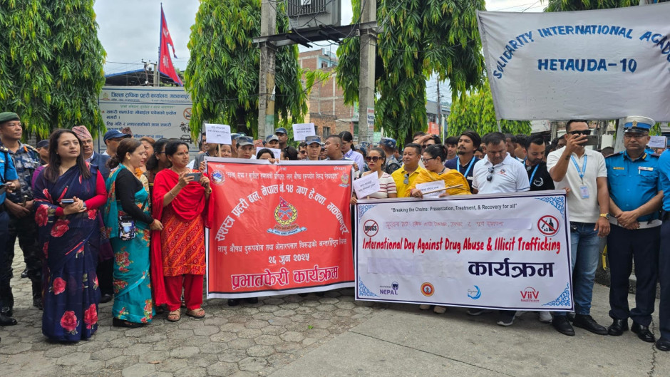 लागु औषध दुरूपयोग तथा अवैध ओसारपसार विरूद्धको अन्तर्राष्ट्रिय दिवस २६ जुन, २०२५ को अवसरमा हेटौडामा आयोजित प्रभातफेरी कार्यक्रम ।