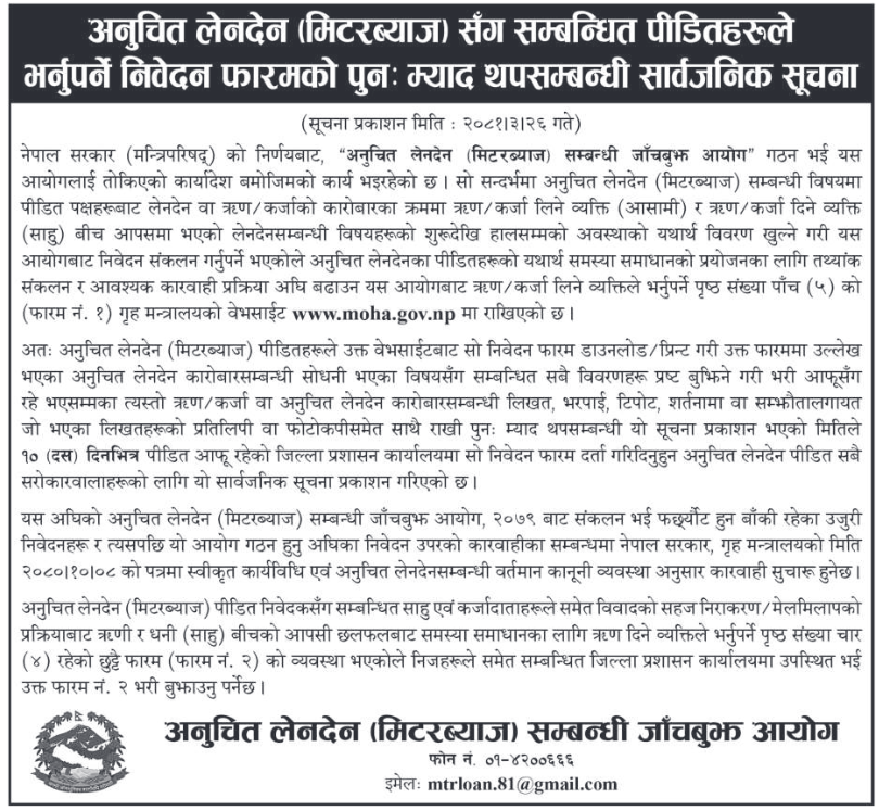 उजुरी संकलनको म्याद थप सम्बन्धी सूचना ।