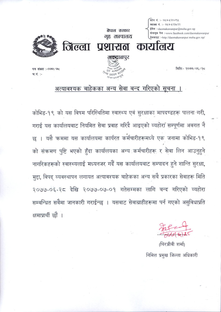 © सर्वाधिकार सुरक्षित जिल्ला प्रशासन कार्यालय, मकवानपुर .