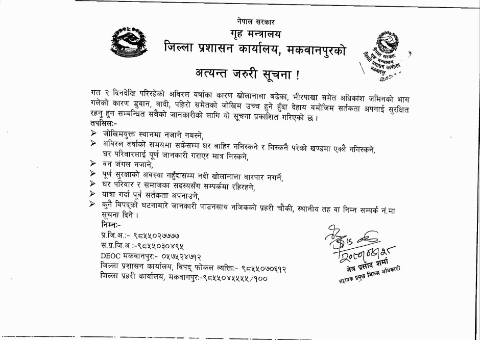 © सर्वाधिकार सुरक्षित जिल्ला प्रशासन कार्यालय, मकवानपुर