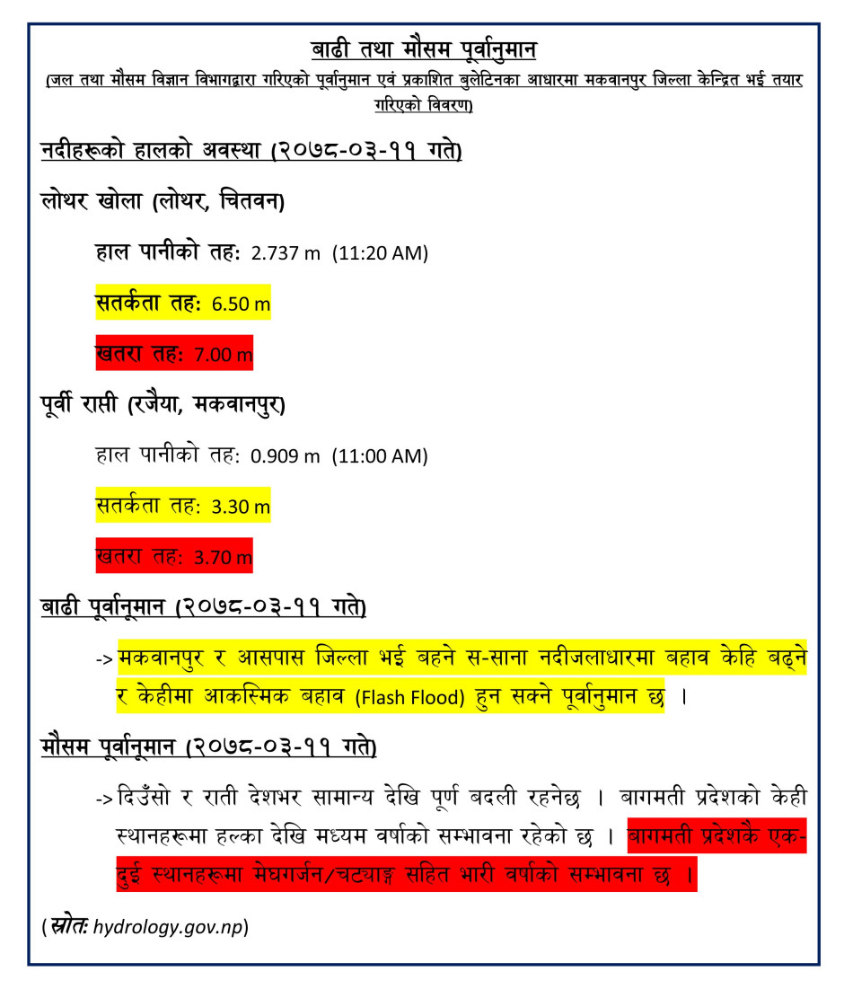 बाढी तथा मौसम पूर्वा...