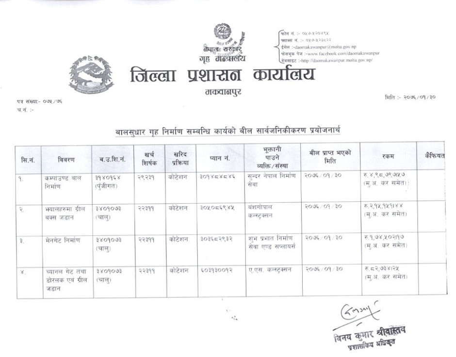 © सर्वाधिकार सुरक्षित जिल्ला प्रशासन कार्यालय, मकवानपुर .
