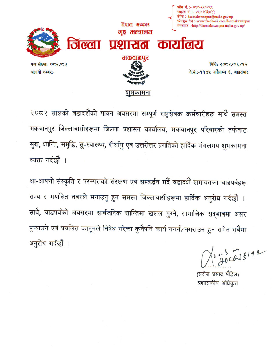 © सर्वाधिकार सुरक्षित जिल्ला प्रशासन कार्यालय, मकवानपुर .