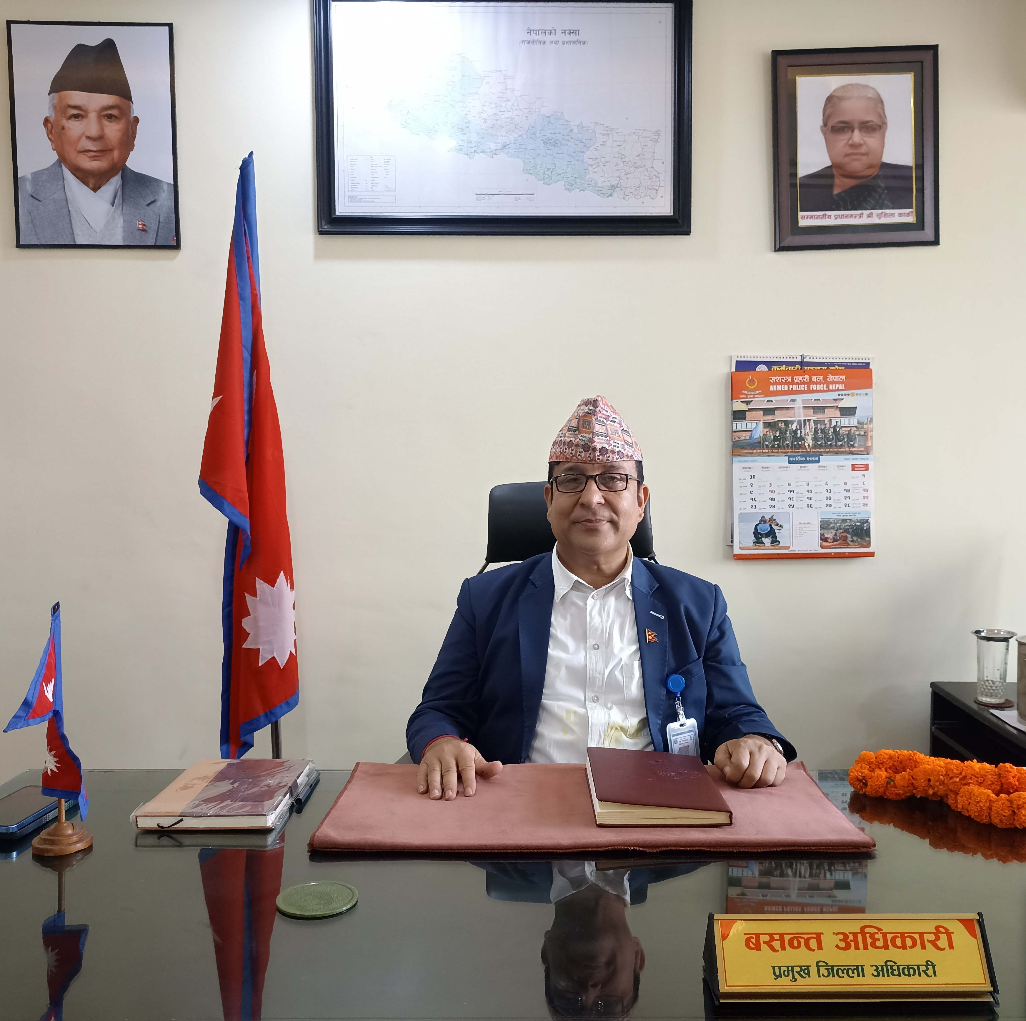 श्रीमान् प्रमुख जिल्ला अधिकारी बसन्त अधिकारीज्यू पदभार ग्रहण गर्नुहुँदै ।