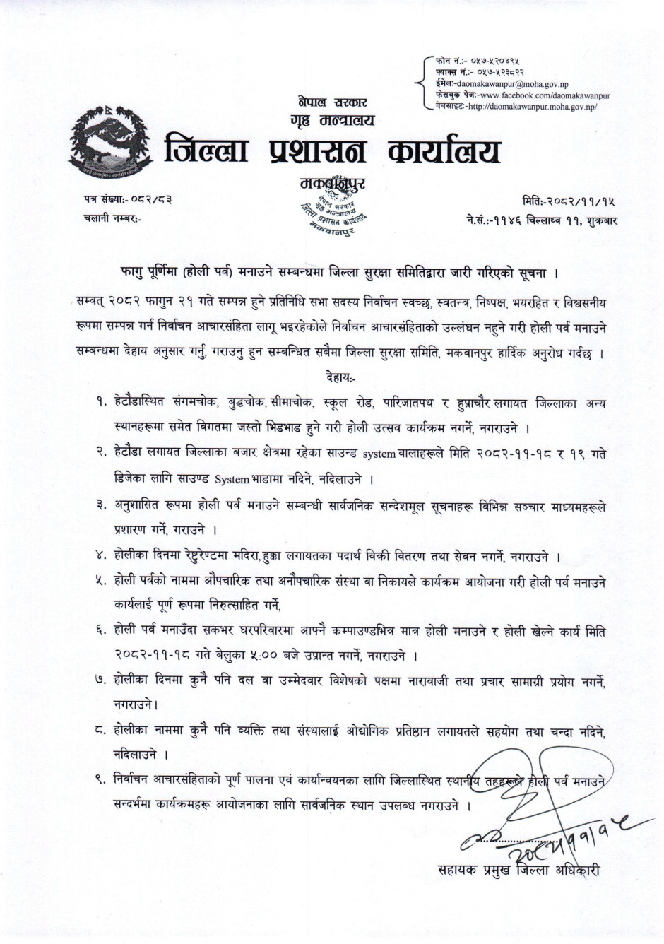 © सर्वाधिकार सुरक्षित जिल्ला प्रशासन कार्यालय, मकवानपुर .