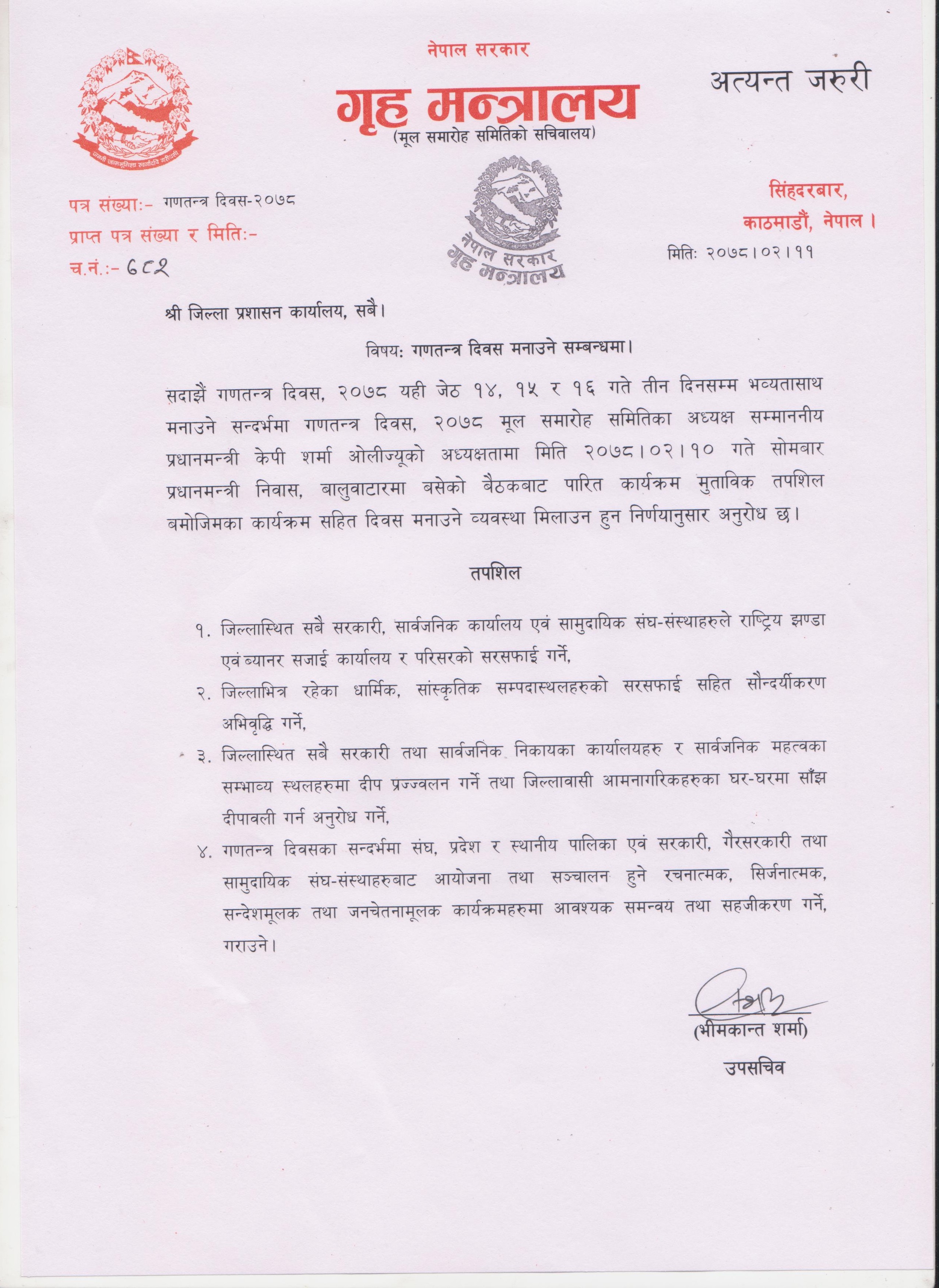 गणतन्त्र दिवस, २०८२ मनाउने सम्बन्धमा ।