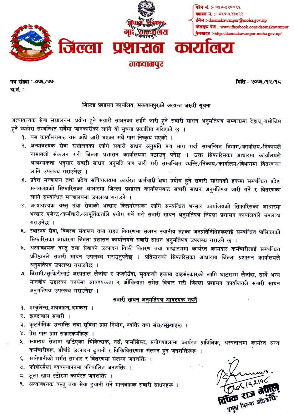 © सर्वाधिकार सुरक्षित जिल्ला प्रशासन कार्यालय, मकवानपुर .