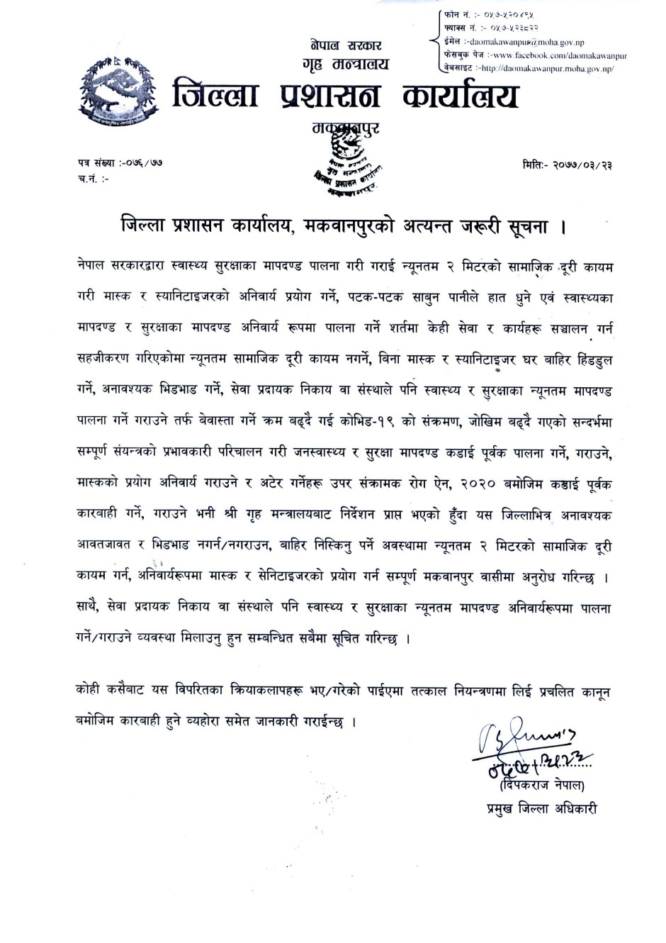 © सर्वाधिकार सुरक्षित जिल्ला प्रशासन कार्यालय, मकवानपुर .