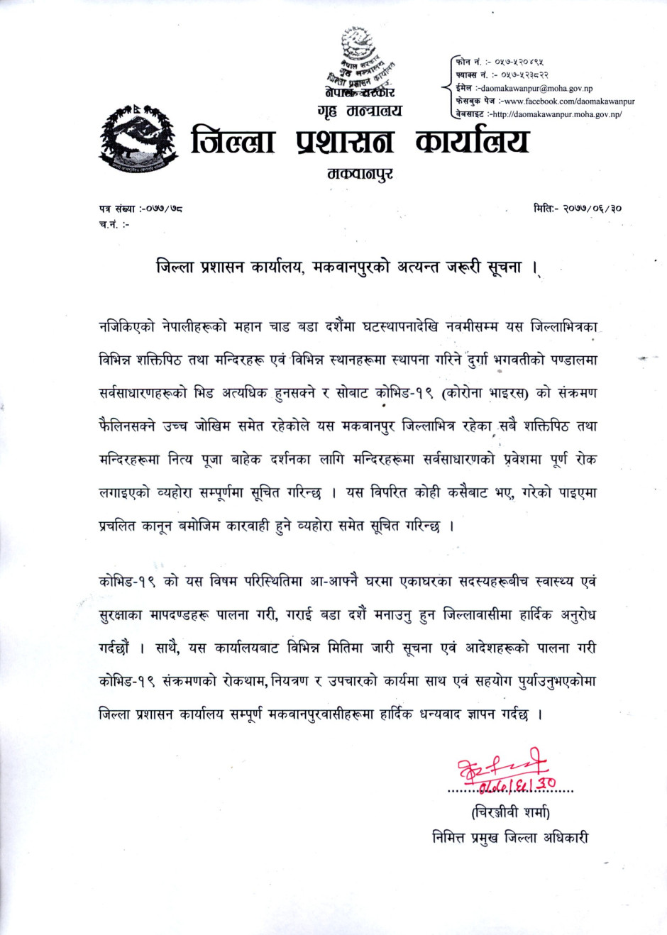 जिल्ला प्रशासन कार्यालय, मकवानपुरको अत्यन्त जरूरी सूचना ।