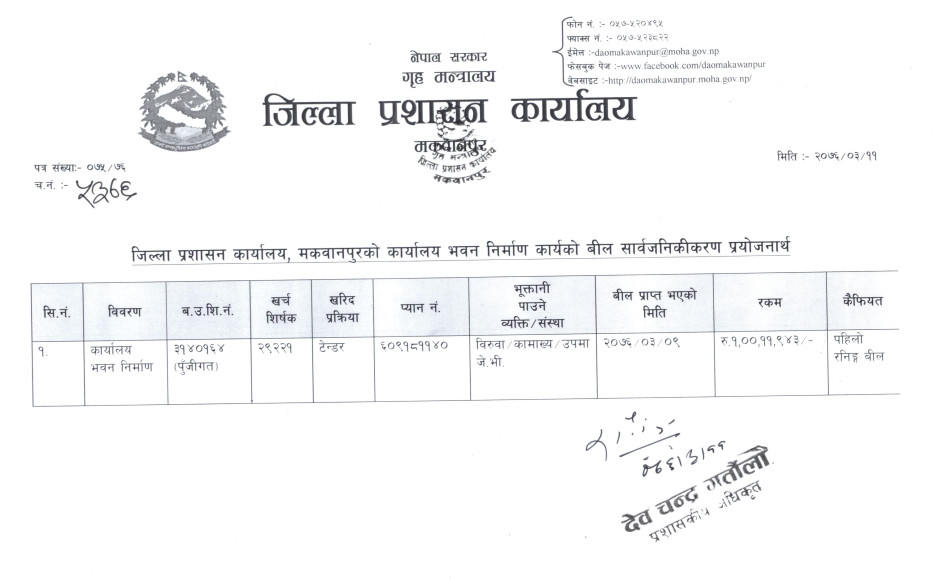© सर्वाधिकार सुरक्षित जिल्ला प्रशासन कार्यालय, मकवानपुर .