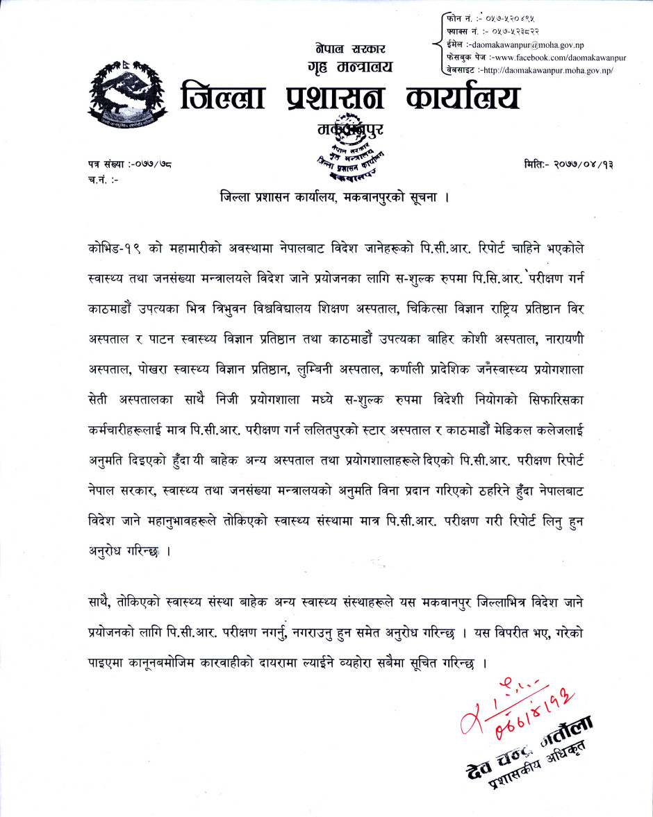 जिल्ला प्रशासन कार्यालय, मकवानपुरको सूचना ।