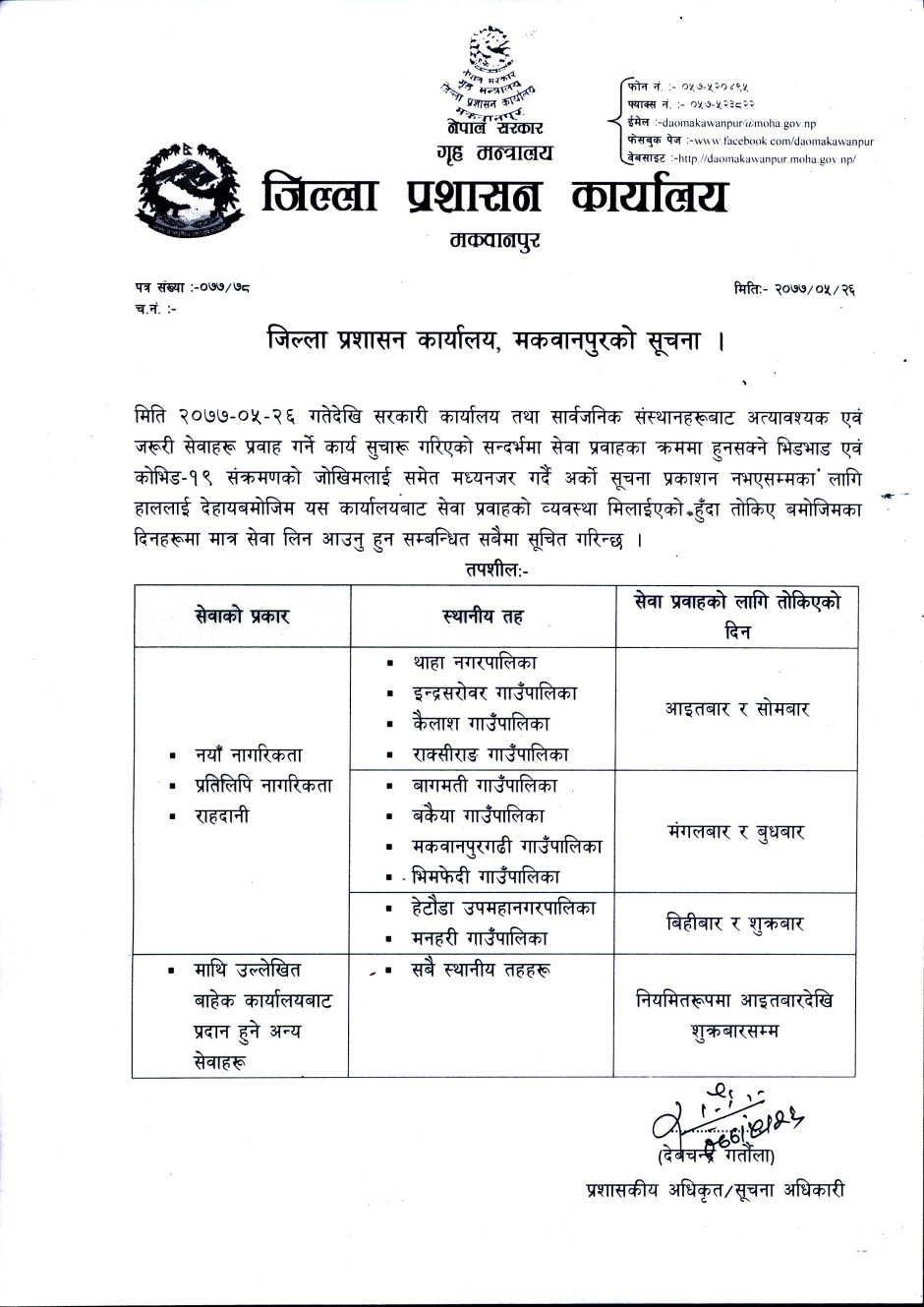 © सर्वाधिकार सुरक्षित जिल्ला प्रशासन कार्यालय, मकवानपुर .
