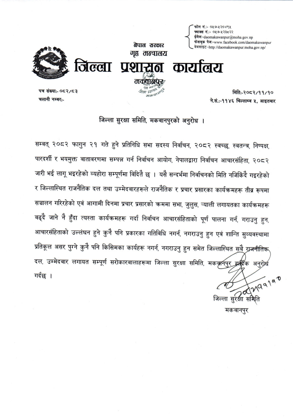© सर्वाधिकार सुरक्षित जिल्ला प्रशासन कार्यालय, मकवानपुर .