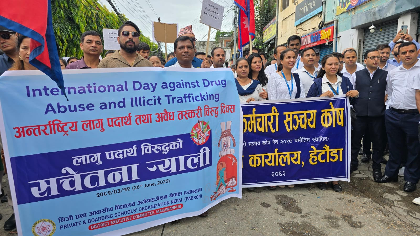 लागु औषध दुरूपयोग तथा अवैध ओसारपसार विरूद्धको अन्तर्राष्ट्रिय दिवस २६ जुन, २०२५ को अवसरमा हेटौडामा आयोजित प्रभातफेरी कार्यक्रम ।