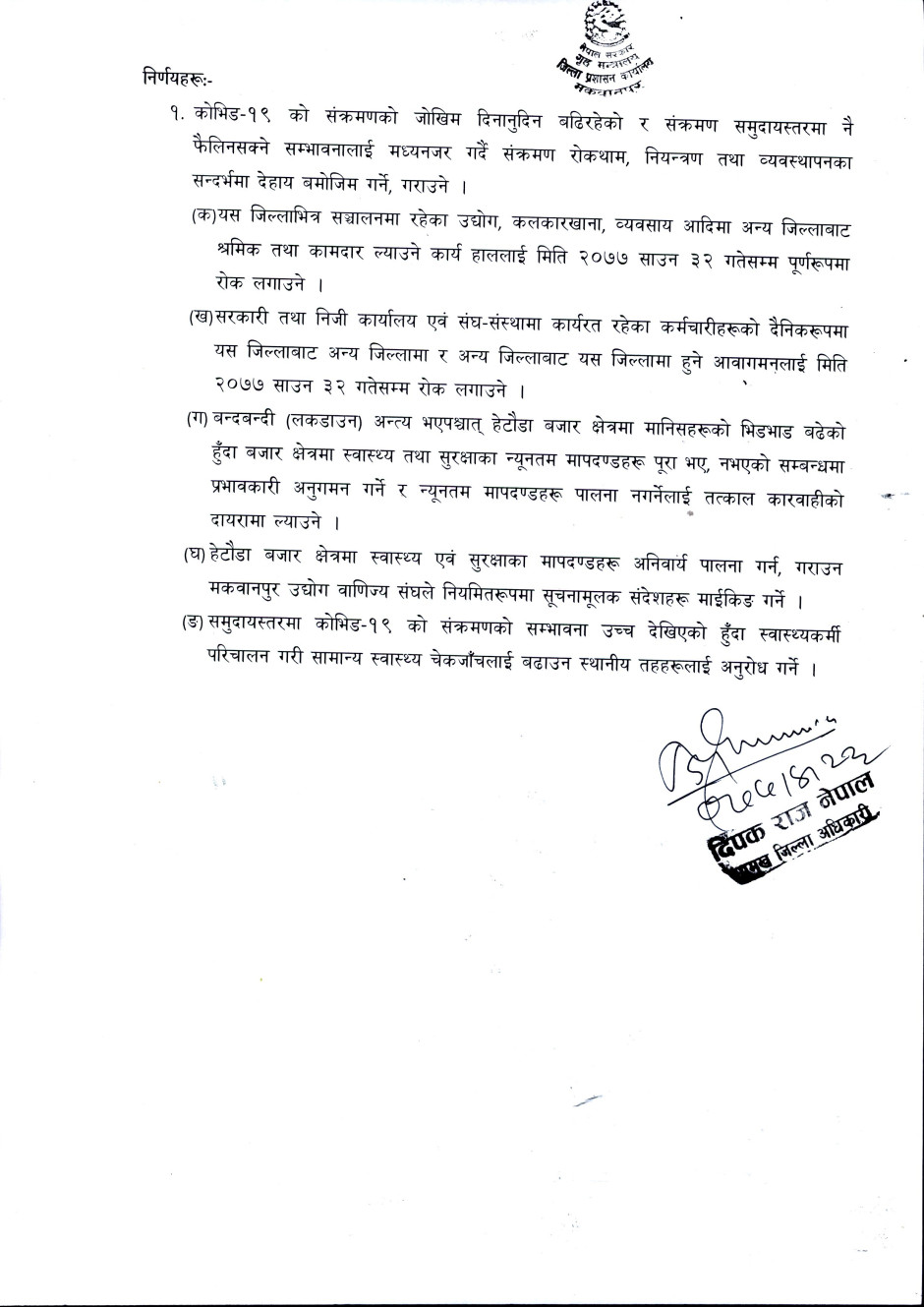 © सर्वाधिकार सुरक्षित जिल्ला प्रशासन कार्यालय, मकवानपुर .