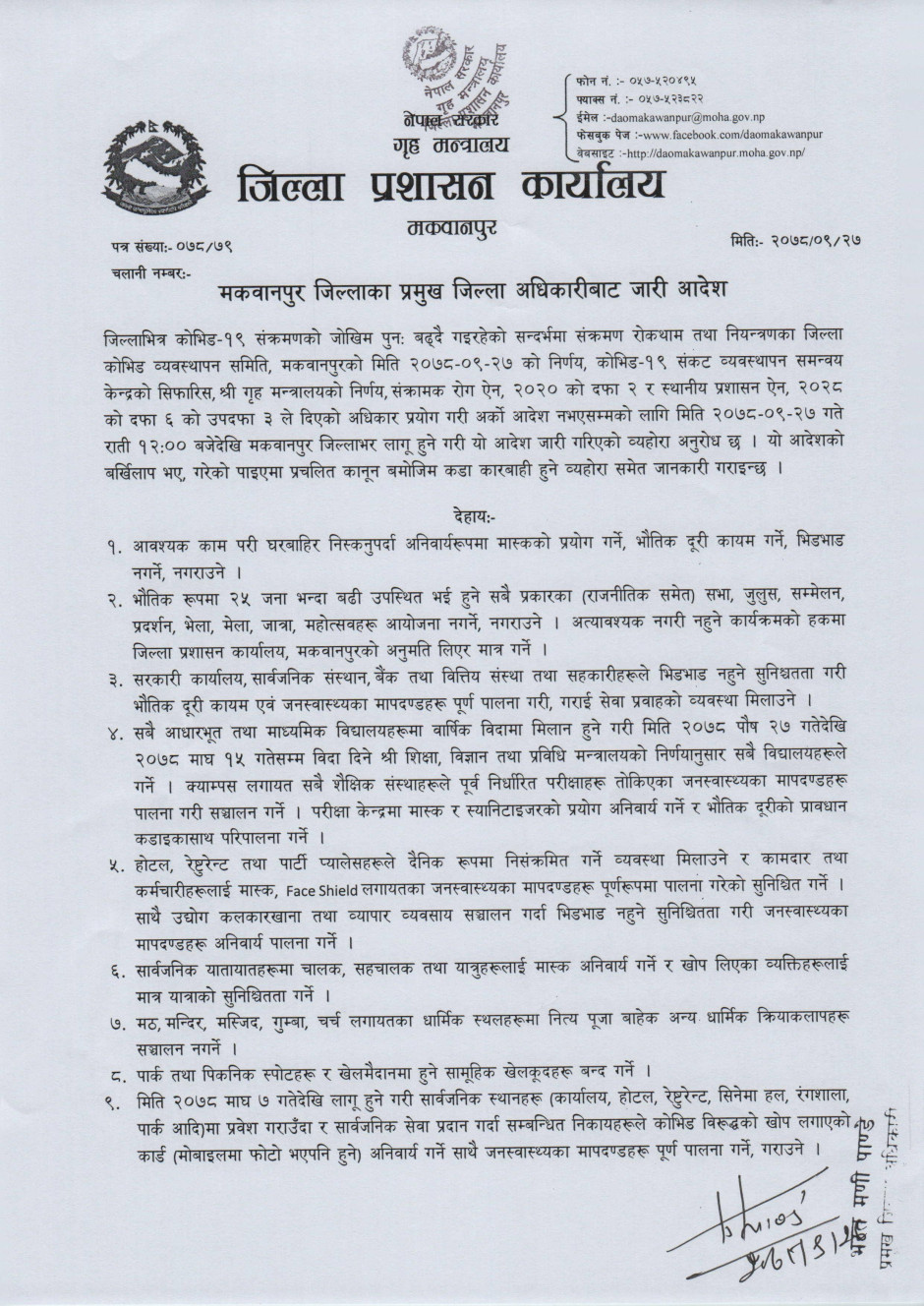 © सर्वाधिकार सुरक्षित जिल्ला प्रशासन कार्यालय, मकवानपुर .