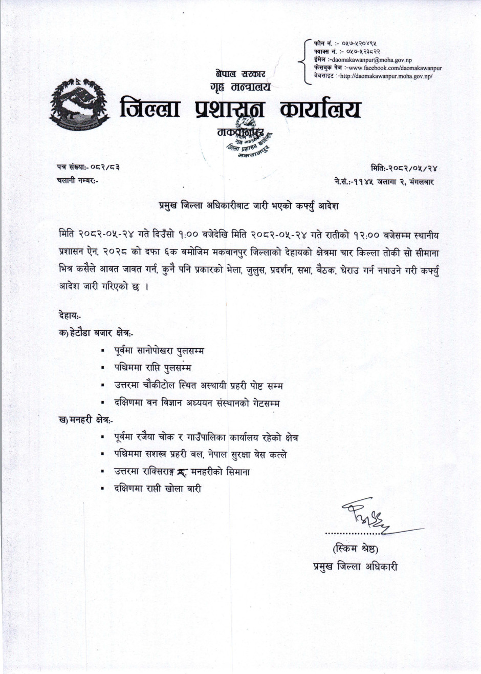 © सर्वाधिकार सुरक्षित जिल्ला प्रशासन कार्यालय, मकवानपुर .