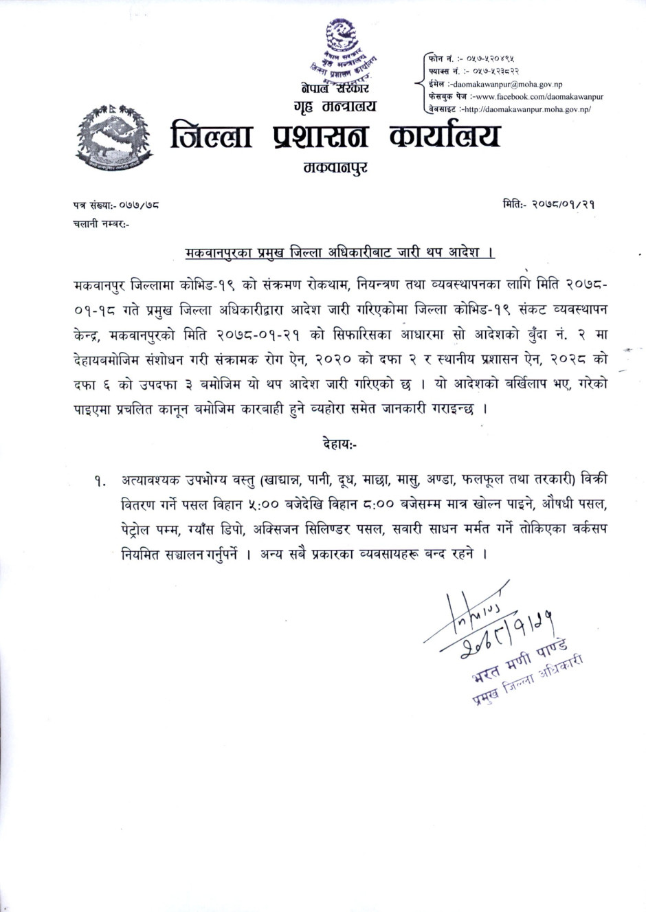 © सर्वाधिकार सुरक्षित जिल्ला प्रशासन कार्यालय, मकवानपुर .