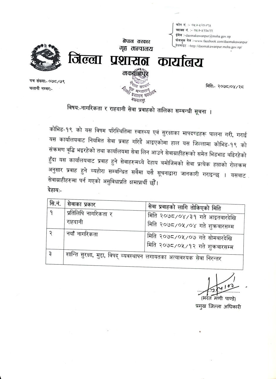 © सर्वाधिकार सुरक्षित जिल्ला प्रशासन कार्यालय, मकवानपुर .
