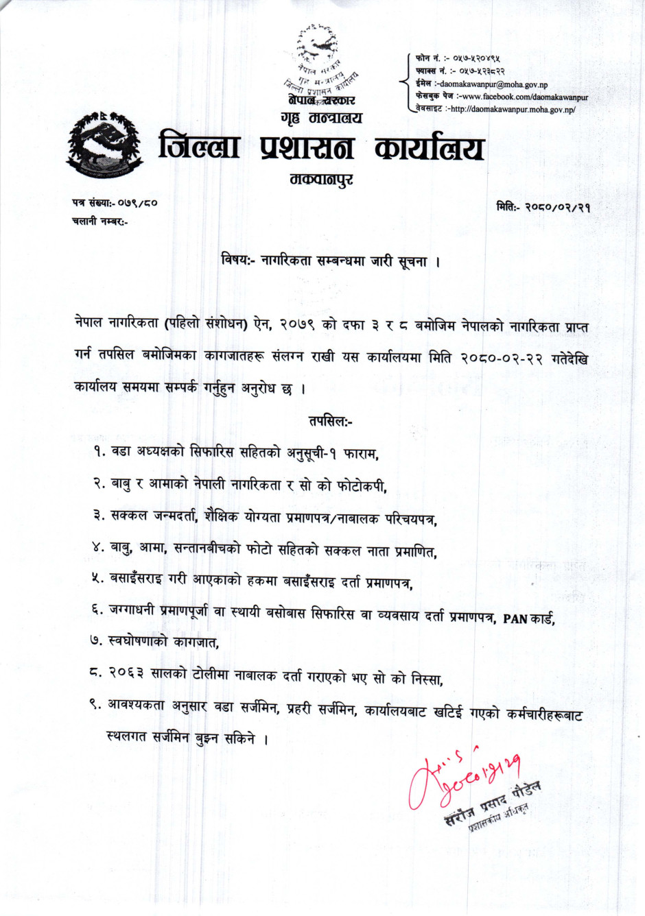 नागरिकता सम्बन्धमा जारी सूचना ।
