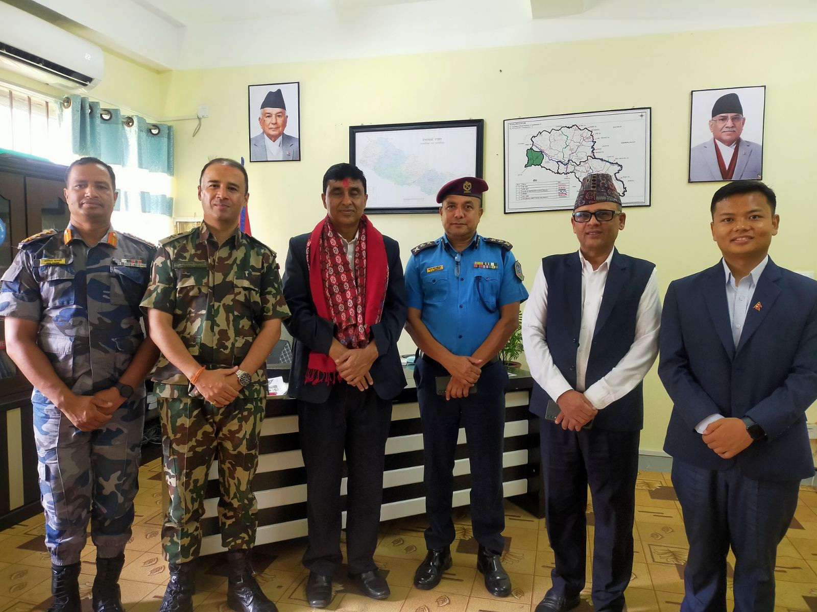 श्रीमान् प्रमुख जिल्ला अधिकारी र नेपाल पत्रकार महासंघ मकवानपुर शाखाको नवनिर्वाचित पदाधिकारीहरूबीच आज मिति २०८१-१०-०७ गते जिल्ला प्रशासन कार्यालय, मकवानपुरमा सम्पन्न परिचयात्मक तथा छलफल कार्यक्रम ।