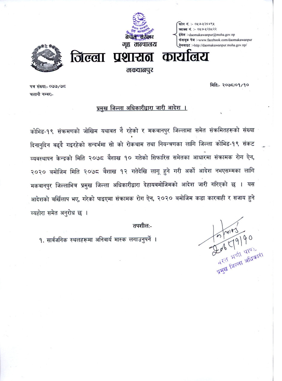 प्रमुख जिल्ला अधिकारीद्वारा जारी आदेश ।