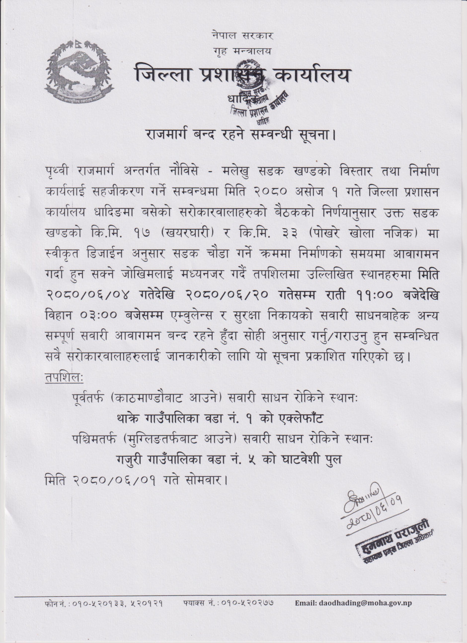 © सर्वाधिकार सुरक्षित जिल्ला प्रशासन कार्यालय, मकवानपुर .
