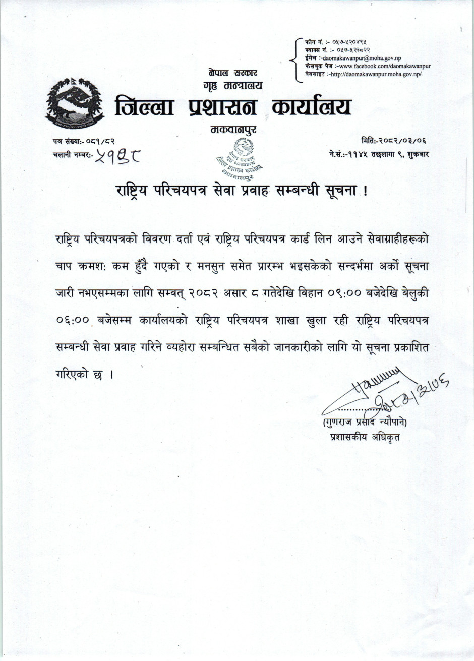 © सर्वाधिकार सुरक्षित जिल्ला प्रशासन कार्यालय, मकवानपुर .