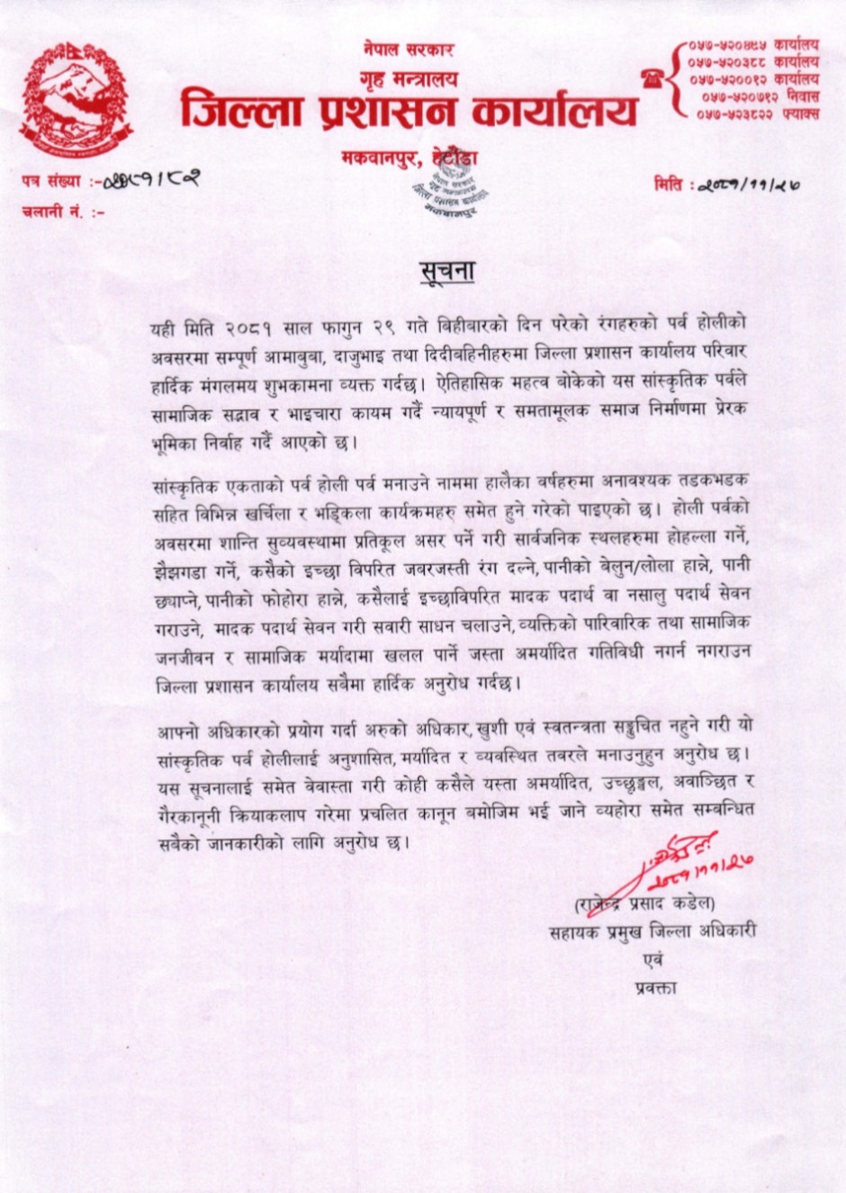 © सर्वाधिकार सुरक्षित जिल्ला प्रशासन कार्यालय, मकवानपुर