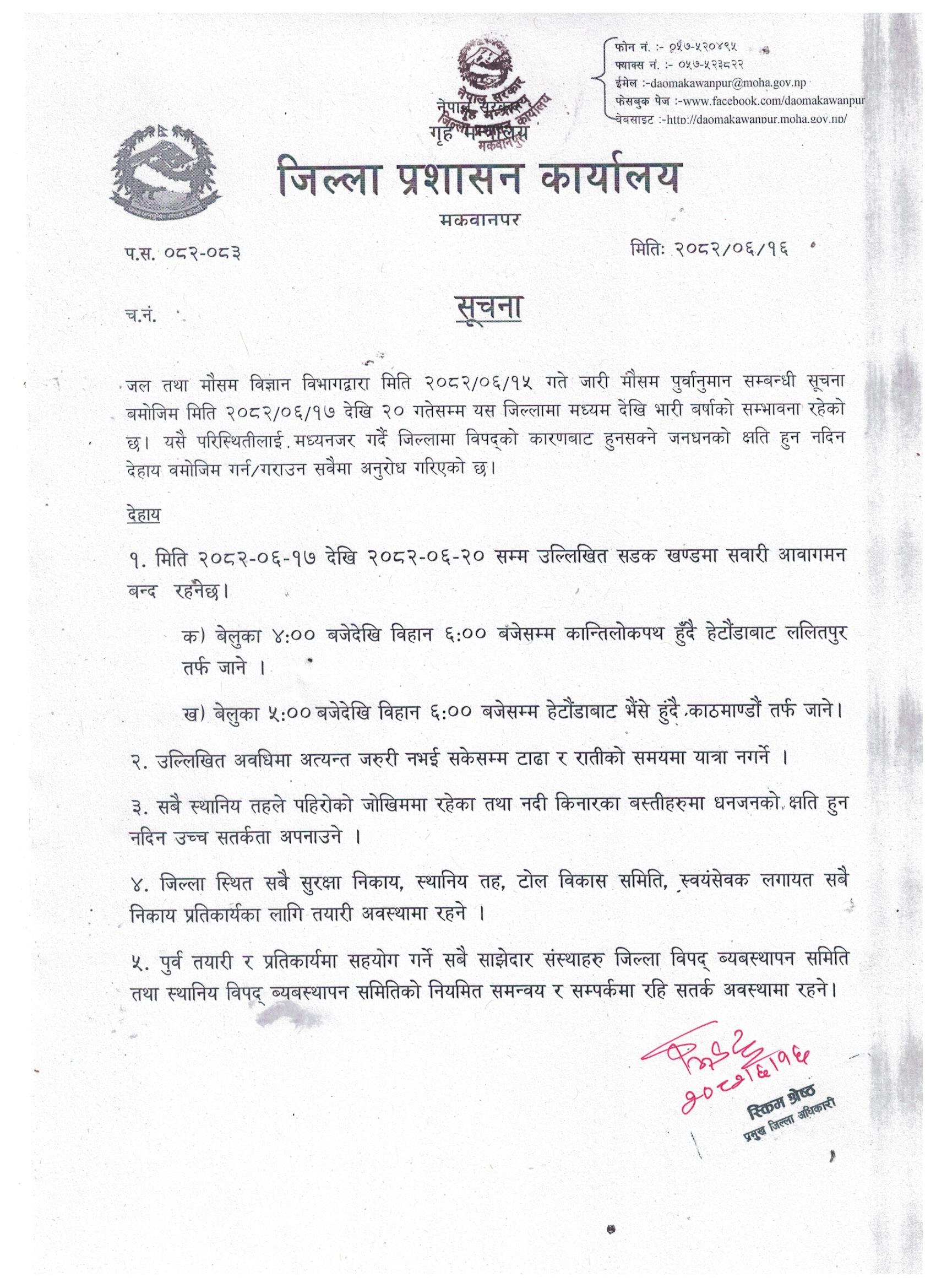जिल्ला प्रशासन कार्यालय, मकवानपुर