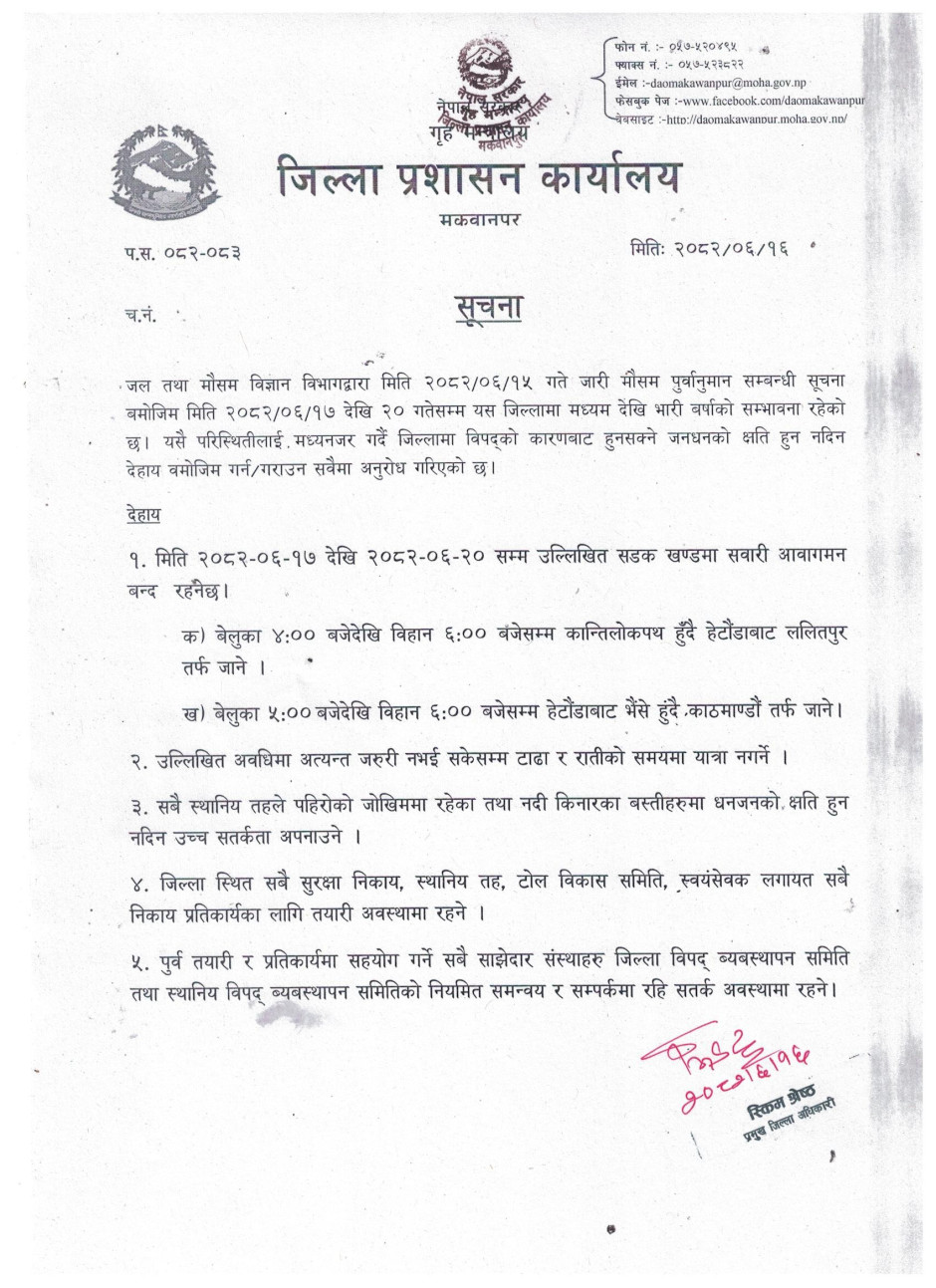 © सर्वाधिकार सुरक्षित जिल्ला प्रशासन कार्यालय, मकवानपुर