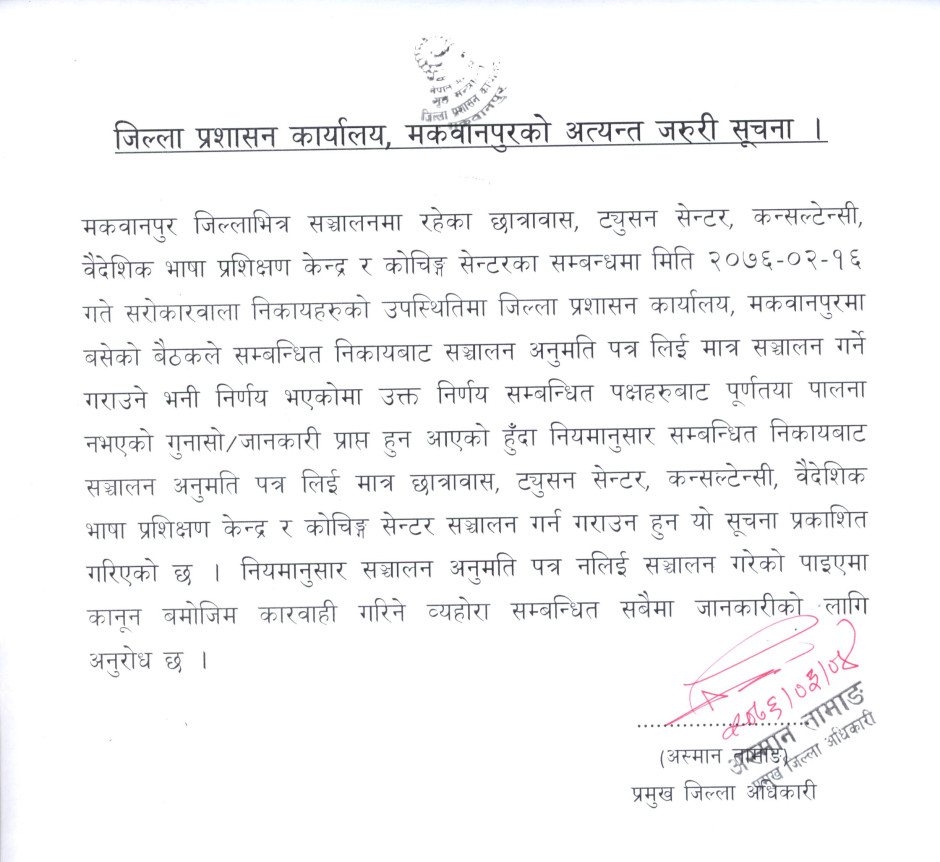 जिल्ला प्रशासन कार्यालय, मकवानपुर