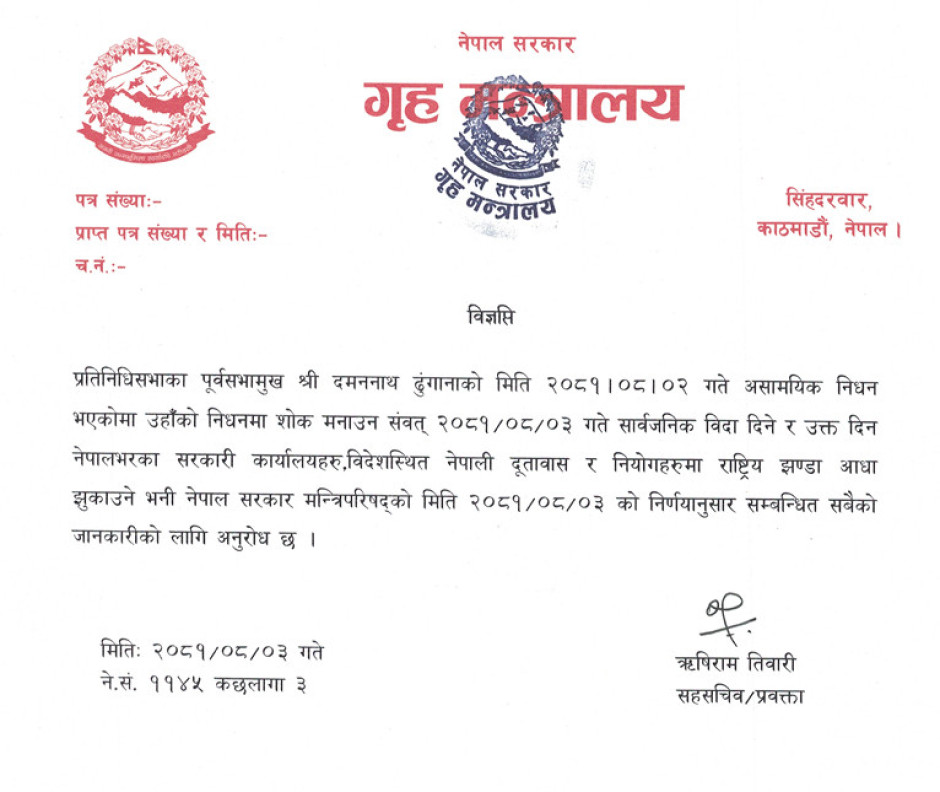 लागु औषध प्रयोगकर्ताहरूको उपचार तथा पुनर्स्थापना क्षेत्रमा कार्यरत संघसंस्था/निकायलाई चालु आ.व. २०८२/८३ मा नेपाल सरकारको तर्फबाट पुरस्कार र अनुदान प्रदान गर्ने सम्बन्धी श्री गृह मन्त्रालयको सूचना ।