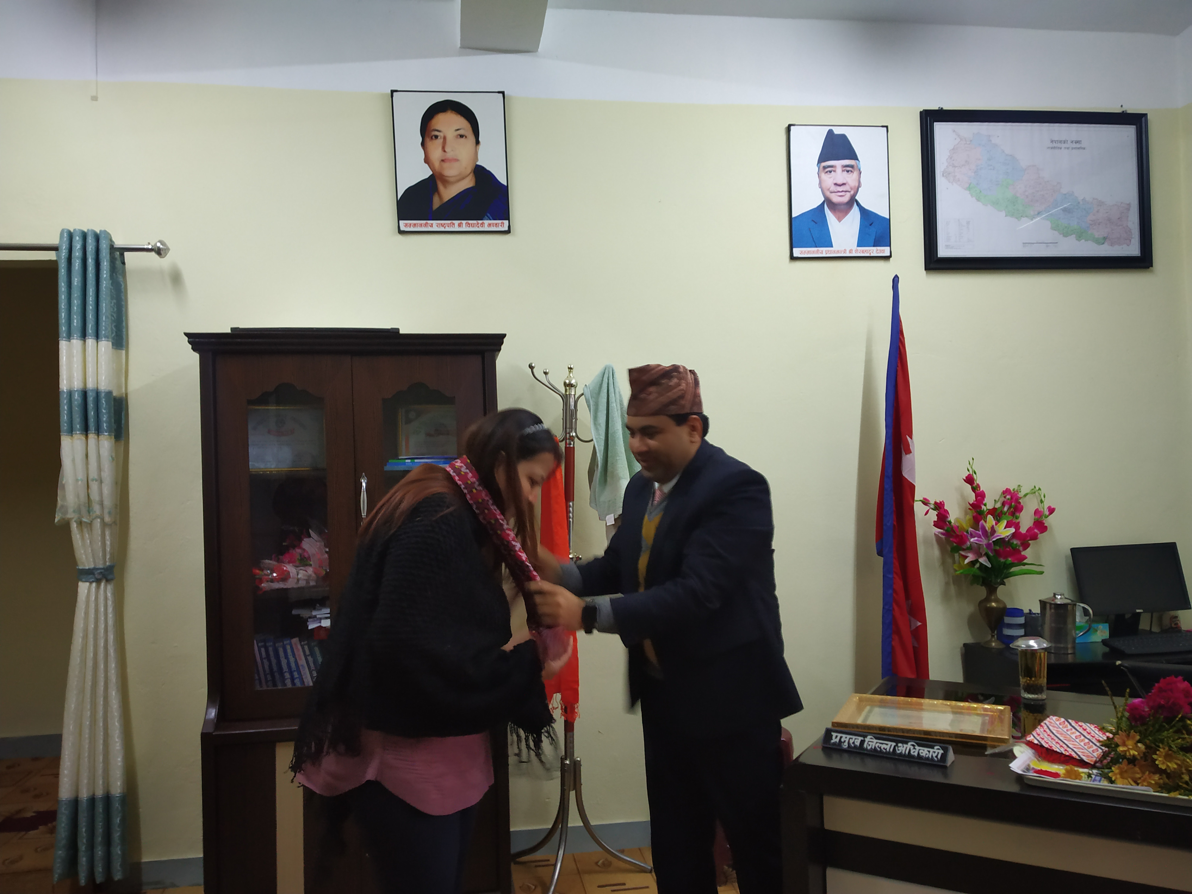 श्रीमान् प्रमुख जिल्ला अधिकारी र नेपाल पत्रकार महासंघ मकवानपुर शाखाको नवनिर्वाचित पदाधिकारीहरूबीच आज मिति २०८१-१०-०७ गते जिल्ला प्रशासन कार्यालय, मकवानपुरमा सम्पन्न परिचयात्मक तथा छलफल कार्यक्रम ।