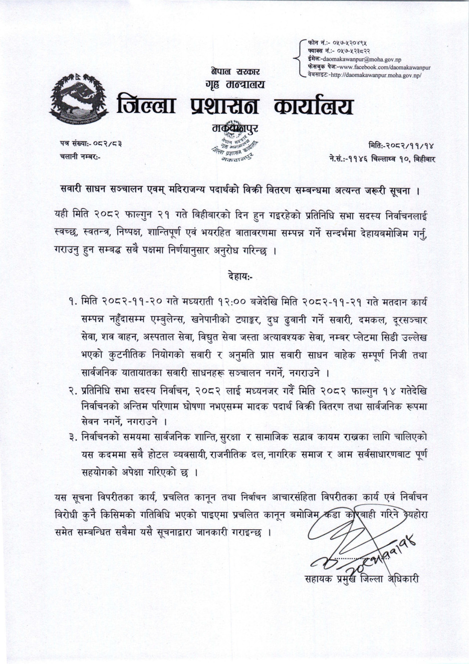 © सर्वाधिकार सुरक्षित जिल्ला प्रशासन कार्यालय, मकवानपुर .