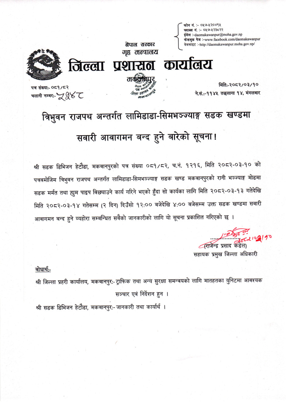 © सर्वाधिकार सुरक्षित जिल्ला प्रशासन कार्यालय, मकवानपुर .