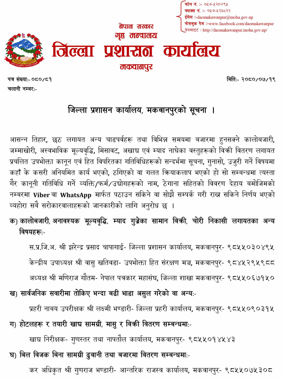 © सर्वाधिकार सुरक्षित जिल्ला प्रशासन कार्यालय, मकवानपुर .