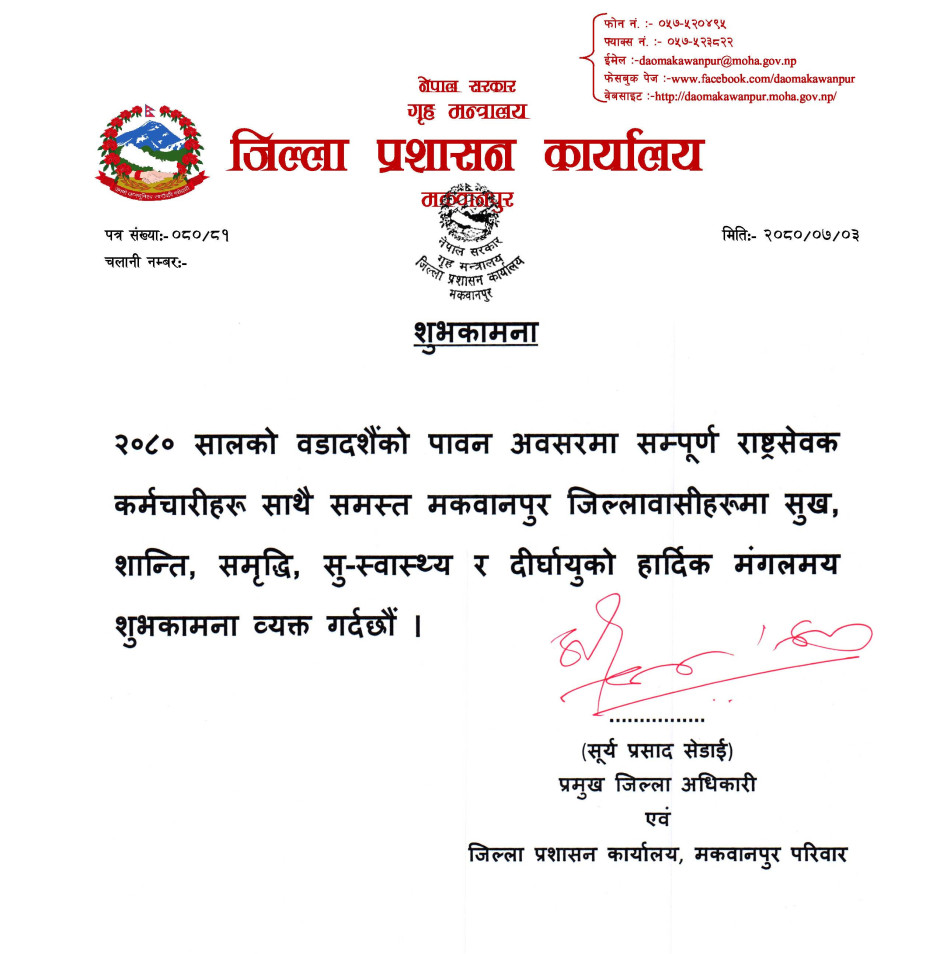 © सर्वाधिकार सुरक्षित जिल्ला प्रशासन कार्यालय, मकवानपुर